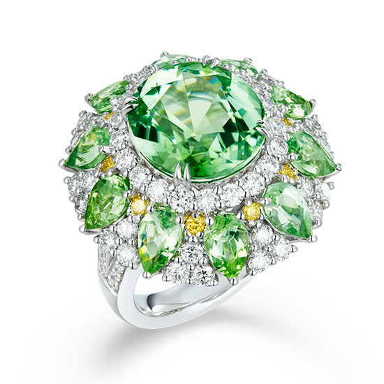 Green Tourmaline & Diamond Cocktail Ring | 18K Gold Luxury Statement